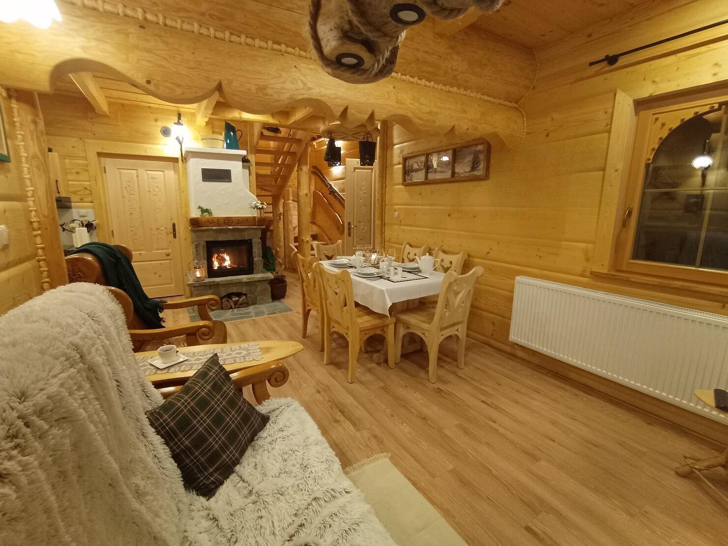 Dom został zbudowany tradycyjną metodą z grubych bali, przy użyciu szlachetnych gatunków drewna: świerku, modrzewia, jaworu, jesionu, brzozy, dębu, jodły kalifornijskiej oraz sosny. Jego wyjątkowy charakter podkreślają kunsztowne rzeźbienia i meble wykonane ręcznie – to elementy wyjątkowe.