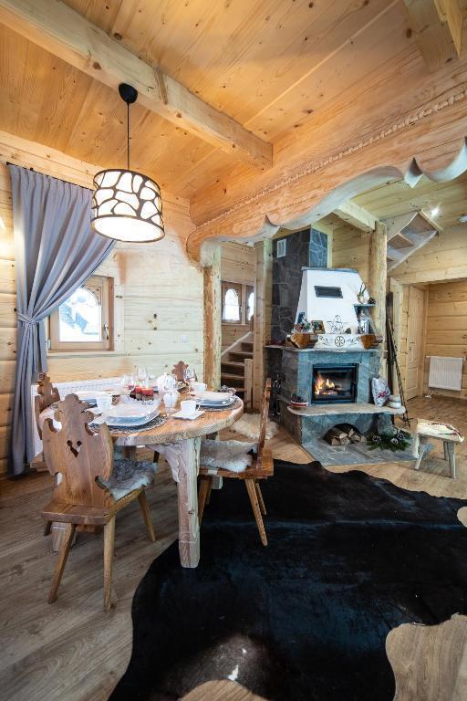 Wyjątkową atmosferę tego domku tworzy materiał i kunszt podhalańskich cieśli, którzy go zbudowali, a także umeblowanie, jakiego nie da się kupić w żadnym sklepie. Dom zaprojektowany jest w tradycyjnym podhalańskim stylu. Do jego konstrukcji wykorzystano takie gatunki drewna jak świerk, modrzew, jawor, jesion, brzoza, dąb, jodła kalifornijska czy sosna. Warto zwrócić uwagę na kunsztownie wykonane rzeźbienia regionalne. Włożyliśmy mnóstwo serca, aby stworzyć dla naszych gości domek marzeń. Zarezerwuj swój pobyt i odkryj wyjątkowy klimat Podhala!